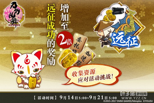 图3 《刀剑乱舞-ONLINE-》远征成功率2倍 【活动时间】9月14日5:00——9月21日5:00 【活动内容】活动期间,审神者派遣刀剑男士去远征成功之后,将获得2倍的资源和道具。