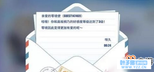 当与角色好感度等级达到3时,会收到如下的邮件。