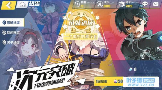 非洲斑竹在《电击文库:零境交错》中获得的成就与抽卡界面 挑战关卡特别多,一言不发就对战(关卡一开就是战斗画面),剧情关卡要肝完一定数量的挑战关卡才能解锁(而且数量巨多),所以,让玩家们肝的动力在哪里?