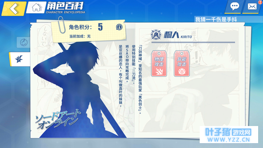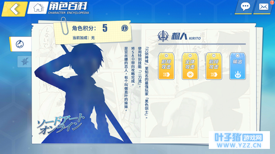被服务器强制下线 ——————没存在的分割线—————— 1.桐人(单手剑) 主战特点:前排攻击 全体攻击 输出
