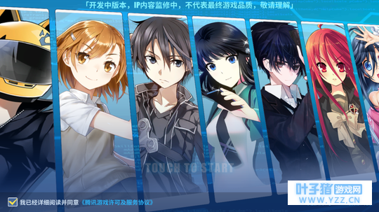 游戏《电击文库 格斗巅峰》 游戏登录界面,背景会不停滚动一些人物立绘,从中就能发现许多没上线的人物。
