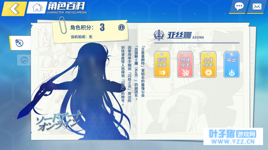 桐姥爷 2.亚丝娜 主战特点:前排攻击 全体攻击 物理攻击 输出