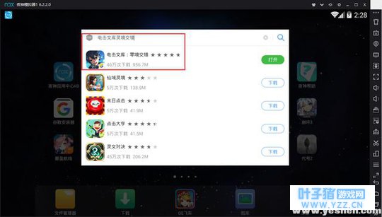 1.在夜神模拟器里的夜神应用中心或者模拟器主页的搜索框中输入:《电击文库:零境交错》,进行下载,并等待自动安装完毕。