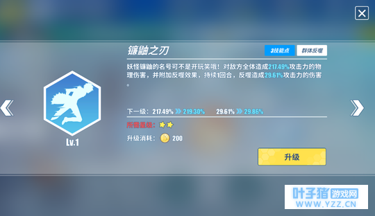 3费群伤技能,又是一个和晓古城断手换来的倍率一样的,初始倍率317.25 伤害重点在前中排