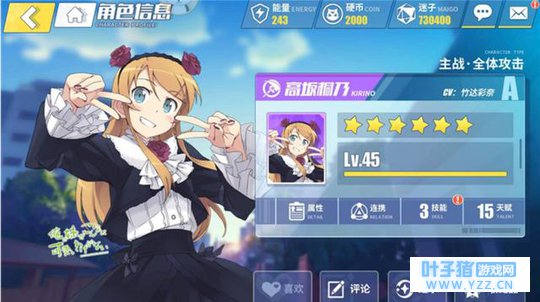 在《电击文库:零境交错》游戏中,主战•高坂桐乃有3个连携技能,分别是:"愉悦的大扫除时间"、"夜魔女王在微笑"和"双马尾是最强属性".
