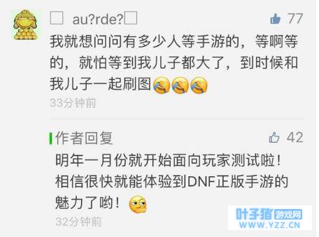 并且在留言中回复了玩家:明年一月份就开始面向玩家测试啦!