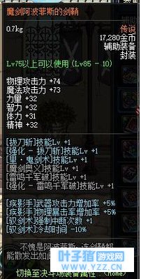 这把武器是鬼剑士的标志性武器,它的名字叫做流星落,所以又被人们称为"流星落",因为在日服, 50级的粉装,当年最贵的时候达到了2000元人民币,注意是人民币不是金币。看看这把武器的加成,自带火属性攻击,还有攻击时会出现陨石的概率,但是特效还是非常炫酷的。无论是PVP还是刷图都是很厉害的一把武器,你值得拥有。 魔剑-阿波菲斯