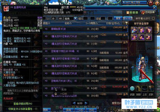 玩过60版本的玩家应该都知道,这是一把很漂亮的巨剑!这把拥有者火红色外观的35级火属性巨剑,当年是多少玩家梦想,现在也是梦想。记得当年60版本的时候拍卖行里的现货就不是很多,现在绝版了,就更不用说了。 绝刀-红莲天舞,50级紫装太刀。60版本时算是广大红眼玩家比较普及的一把武器,金黄色的刀身,攻击敌人时2%几率使其进入出血状态。当年玩红眼的时候用这把太刀砍怪简直爽翻。