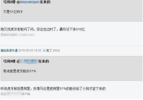 有的网友猜测是51亿,更有网友调侃是花了510亿,还有可爱的网友表示是51%的股份。虽然我们不知道具体的价格,但是这个价格肯定是花了虎牙的大价钱,这点是毋庸置疑的。很多网友表示:这一波可是得把虎牙的身体掏空了,这样的操作还是少点比较好。