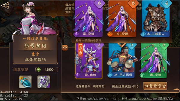 4. 当构建的自身的3张悬赏令和悬赏官差给予的目标一致时,可进行一网打尽