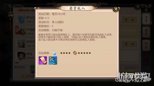 悬赏乱入活动在每天24小时都能进行的,有3次奖励。活动的形式可以是单人或组队,悬赏乱入不奖励阅历,在玩家的等级达到20级之后才开放活动。悬赏乱入活动可以无限制完成,但每天只能活动3次乱入的奖励,所以不要重复做了哦。