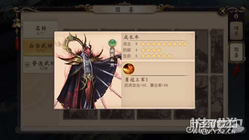 幽冥血煞在外形是非常酷炫的,看起来就让玩家们觉得很有气势。在成长率的数据上,攻击是9、防御是4、生命是6,从数据上看,幽冥血煞这个白金武是攻击类型的,自身的攻击成长是很高的,适合那些需要输出、爆发的职业。 技能上,由于不是名将,所以就没有名将技能这个选项,只有一个武将自己的技能,勇冠三军。可以让武将的攻击+90,暴击率+6%,技能上也是提升输出的技能,适合在pk对战中使用,提升己方的输出情况。 [编辑:叶子猪小秘书]