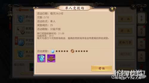 首先,玩家们认为的传统意义上的竞技场,就是大唐无双手游中的单人竞技场,因为单人竞技场的开放等级是32级,比较靠后,所以很多的玩家都觉得好像没有似的。单人竞技场是全天都能玩的,有10次的挑战机会,奖励阅历25。