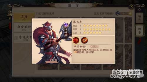 接着就是单雄信,虽然无名的输出很高,但是非常的脆皮,如果被近身的话,就会很被动。而单雄信的名将技能千军斩将,可以嘲讽6步范围内的敌人,还能提升自身格挡率。普通技能还能够击倒敌人,是个非常好的控制型武将,能够保证无名的输出。