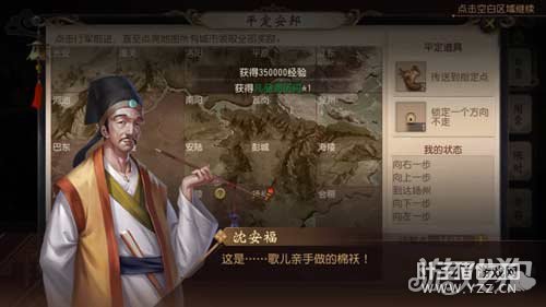 周围的城市都开了,所以不打算浪费点数,准备直接飞一下,点选道具,再找你想要去的点,优先寻访任务或者宝箱,因为随机点有好有坏不稳定。并且最好飞的点是周围没开的,有时会节省很多行军点。我飞到了扬州,触发寻访。