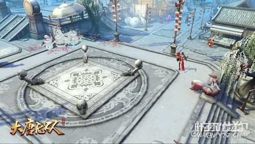 【瑞雪兆丰年 场景新面貌】 伴随着春节的临近,《大唐无双》手游的长安城中也迎来了今年的第一场雪,玩家可以欣赏雪中的长安之美。街道上挂起了火红的灯笼,金鸡雕像出现在了各个角落,还有不知道是哪家小朋友默默堆起来了的雪人出现在街角。长安城内外还有更多的惊喜等玩家去发现~