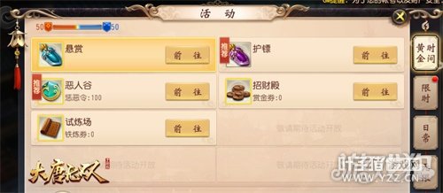 在《大唐无双》手游中的“黄金时间”概念,将为玩家提供一个自由自配刷取所需道具的时间,而不用拘泥于原本每天的次数限制和活动时间要求:每位好战玩家每天将有45分钟的黄金时间,可以从悬赏、护镖、恶人谷、招财殿、试炼场等玩法中去自由选择自己需要的物品道具,想刷什么就刷什么,完全的无限制自由度。 图3