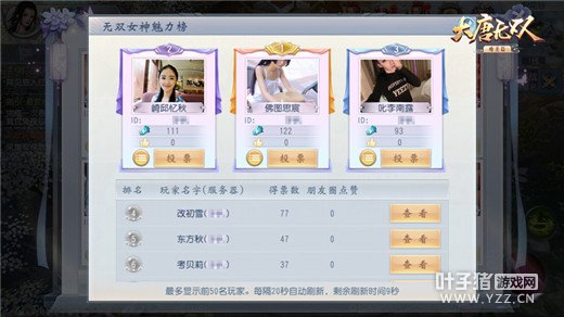 成为女神,首先是需要女性角色,例如百花医、百花蛊双姝,还有无名,并在活动界面上上传秀出自己的靓照美颜,在写上一段竞选宣言口号。做好这些报名准备后,就可以开始拉票,亲朋好友,帮派兄弟一个都不能少,票数直接决定了魅力榜上的自己上升位置。 所有的好战玩家都可以通过阅历来获得选票,阅历越高获得的选票数量阅读,甚至能获得可以在直播间赠送给主播的紫色选票。在给心爱的女神投票时,记得在朋友圈点个赞,还能为她在世界频道、帮会频道、自己好友中拉选票。