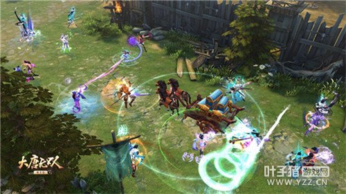 【黄沙百战跨服边境 群战升级战斗更逞威】 《大唐无双》唯美篇“寒夜魅影”年度资料片带来不仅是全新的寒冰职业,更拉开了群战升级的狂欢战斗序幕,阴山战场、黄沙百战、跨服边境等三大战场全面覆盖个人英雄、帮会群英、国家大军三大层面群战玩法。 阴山战场上15V15劫车乱斗,志同道合的兄弟好友组成队伍围绕着运输车的控制与保护展开激烈厮杀。简单干脆直接,每一种职业的特色都被发挥的淋漓尽致。