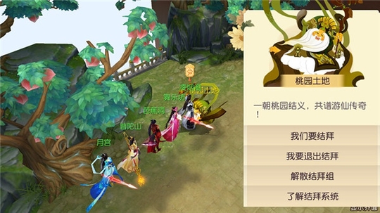 二、结拜流程: 1、 降妖结拜的玩家组队前往天宫蟠桃园寻找桃园土地申请结拜。