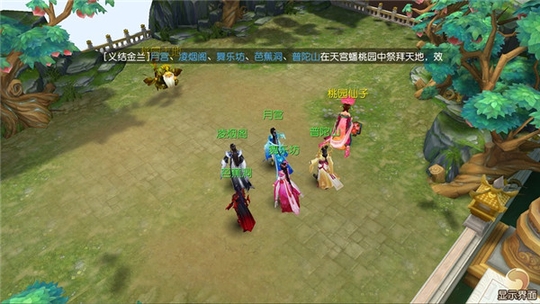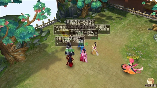 三、结拜仪式: 所有成员同意结拜后,正式举行结拜仪式! 结拜仪式由桃园土地主持,所有结拜成员依次在桃园土地面前站定,以皇天后土为证,有福同享有难同当,共谱游仙传奇 “皇天在上,厚土为证!今日我等于这桃园之中,土地面前,义结金兰!从此同心协力,闯荡世界,有福同享,有难同当!不求同年同月同日生,但求一起降妖伏魔,占星打本!”