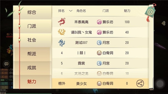 图7:《大唐游仙记》热门广场 【互赠礼物,魅力值蹭蹭蹭】 好友之间还可以通过互相赠送礼物来表达感情,同性之间可以送金兰花,以示金兰之情,而异性之间可以赠送玫瑰花,表达倾慕之心。花草可以通过商城购买,藏宝图也有机会挖出。互赠礼物不仅能增加自己的友好值,还能为对方增加魅力值。而游戏中的魅力排行榜则能一眼看出谁是人气之王。