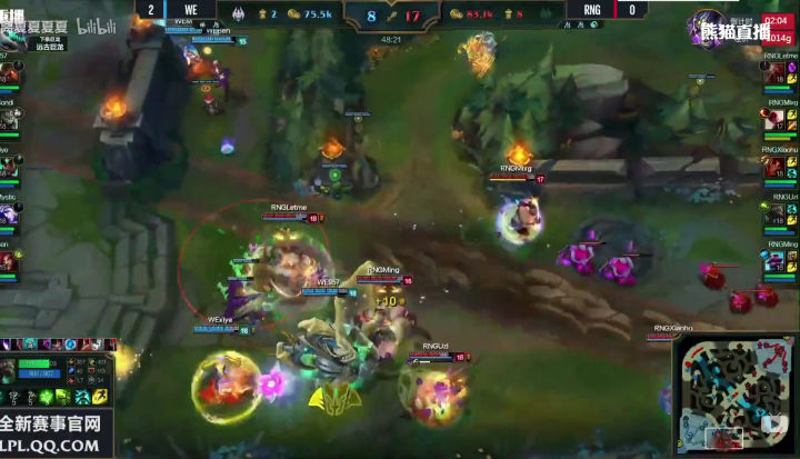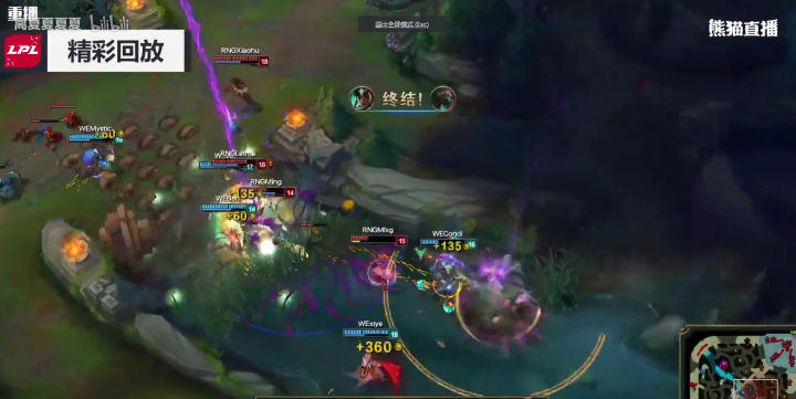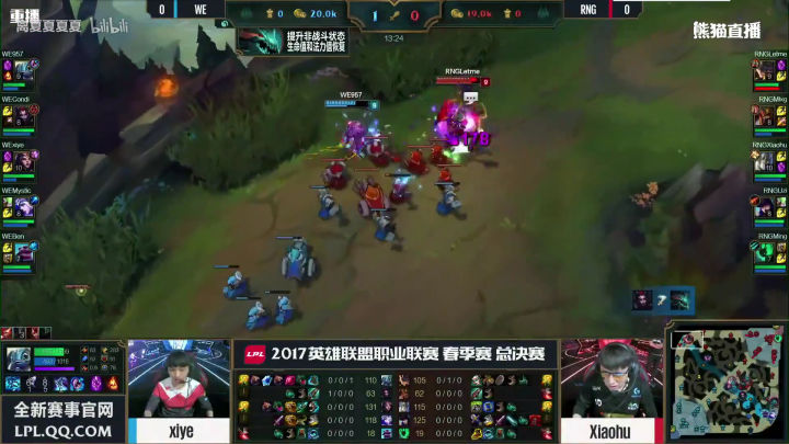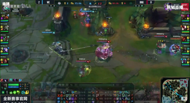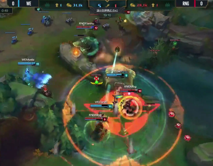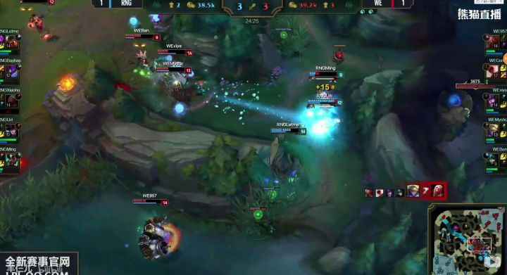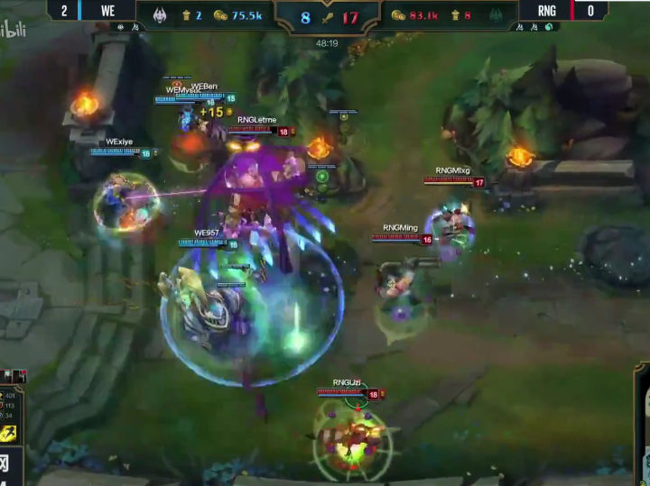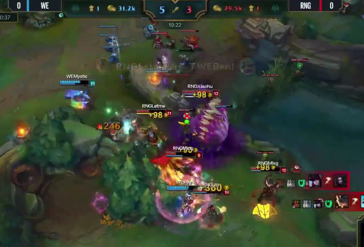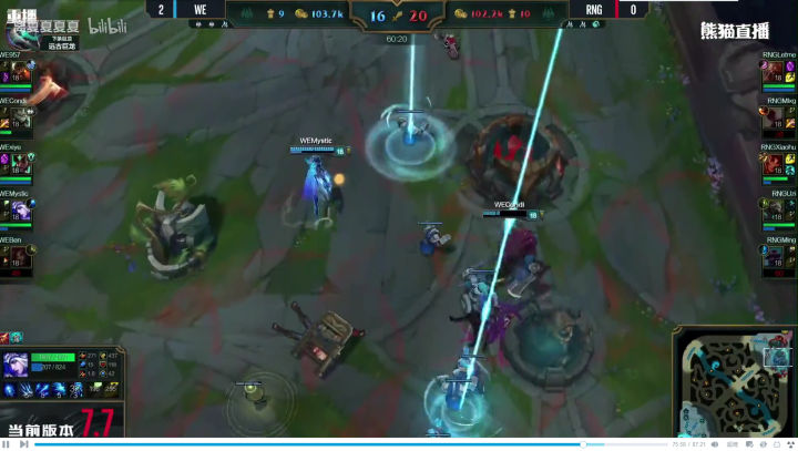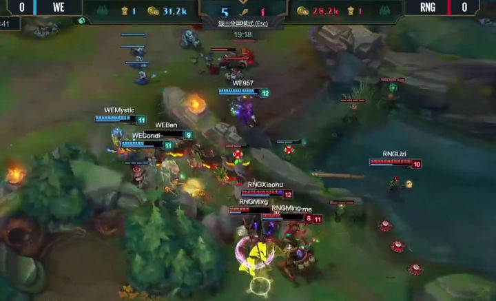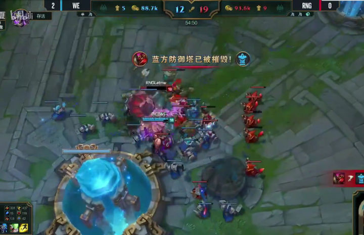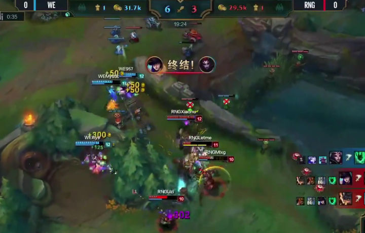 WE没有丝毫犹豫,绝不给RNG喘息之机,上中回家休整之后,双TP神兵天降!