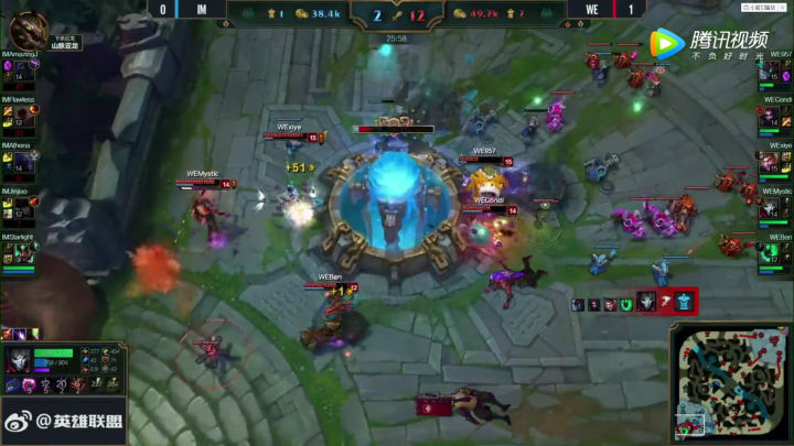 先下一局的WE显然也明白自己只要不失误,今年的IM根本不是自己的对手,于是第二局干脆利落的25分钟带走比赛,中路xiye在condi的帮助下早早奠定优势,全场碰谁谁伤打谁谁死,简直无解。2比0,WE五连胜。