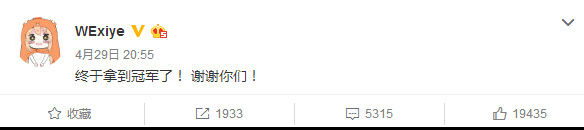 历时60分钟的总决赛最终局结束,WE终于在职业联赛成立四年之后,首次站在召唤师峡谷之巅! LPL总冠军!!! 历经九个赛季!!! 先后20个队员努力!!! 1505天的等待!!! WE,回到了他们应该回到的位置!!!