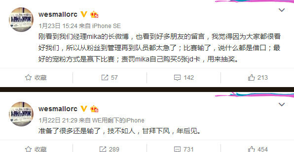 ceo在休息室偷橘子 第二轮对阵EDG,一个干脆的0比2,面对阵容换血,明凯休息,爱萝莉首发的EDG,WE输的很干脆,也让所有赛前看好WE的人大跌眼镜。此时的WE,还没有应对成为第一梯队的压力和经验,在逆境之时的处理也非常幼稚。 赛后CEO小兽也发微博承认WE的心态因为赛前媒体的一致看好而出现了变化。