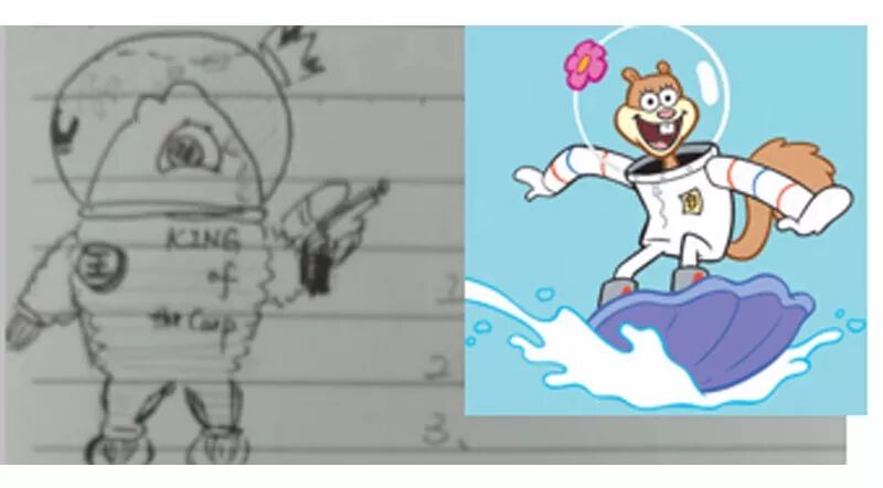 没错!另一个这样穿的知名角色就是海面宝宝中【松鼠珊迪】,一个穿着宇航服在海底生活的陆地生物。头盔上还有有一个可爱的樱花。