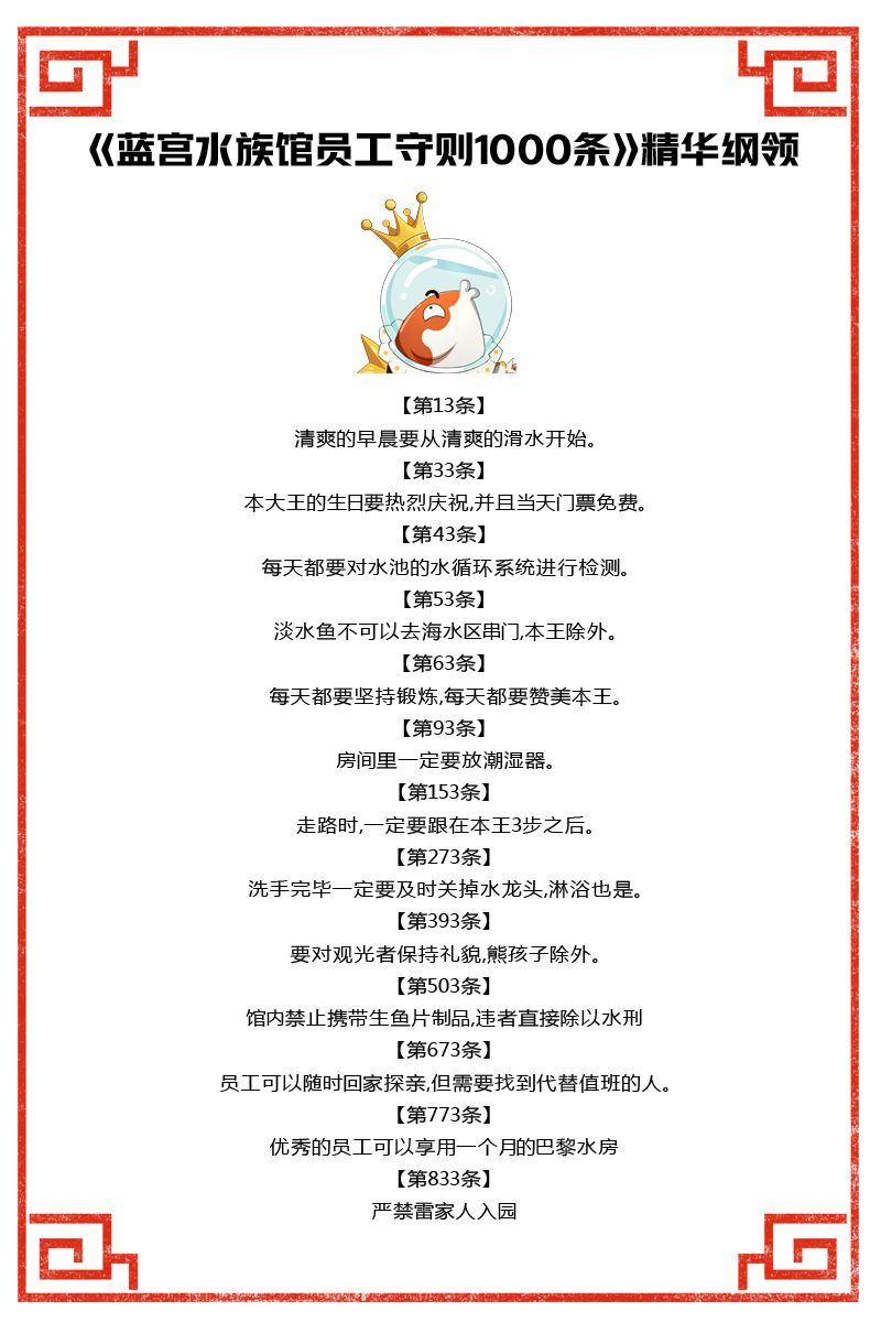 给大家截取一下灵感大王的水族馆员工守则1000条 (并没有人看) 部分内容: