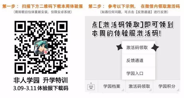 今天推送的 第二条 为本周体验服的 下载+激活码 领取方式,各位同学可以先行到二条进行包体下载。