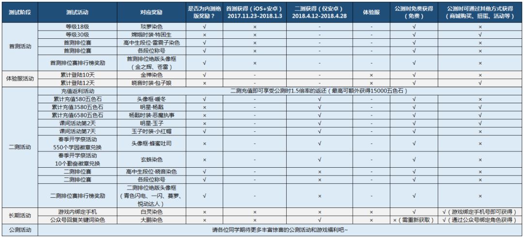 从2017年11月23日首测开始,《非人学园》经历了首测、安卓计费二测和数次周末体验服小测试。在此为大家进行重要 内测奖励 的小盘点(如下图):