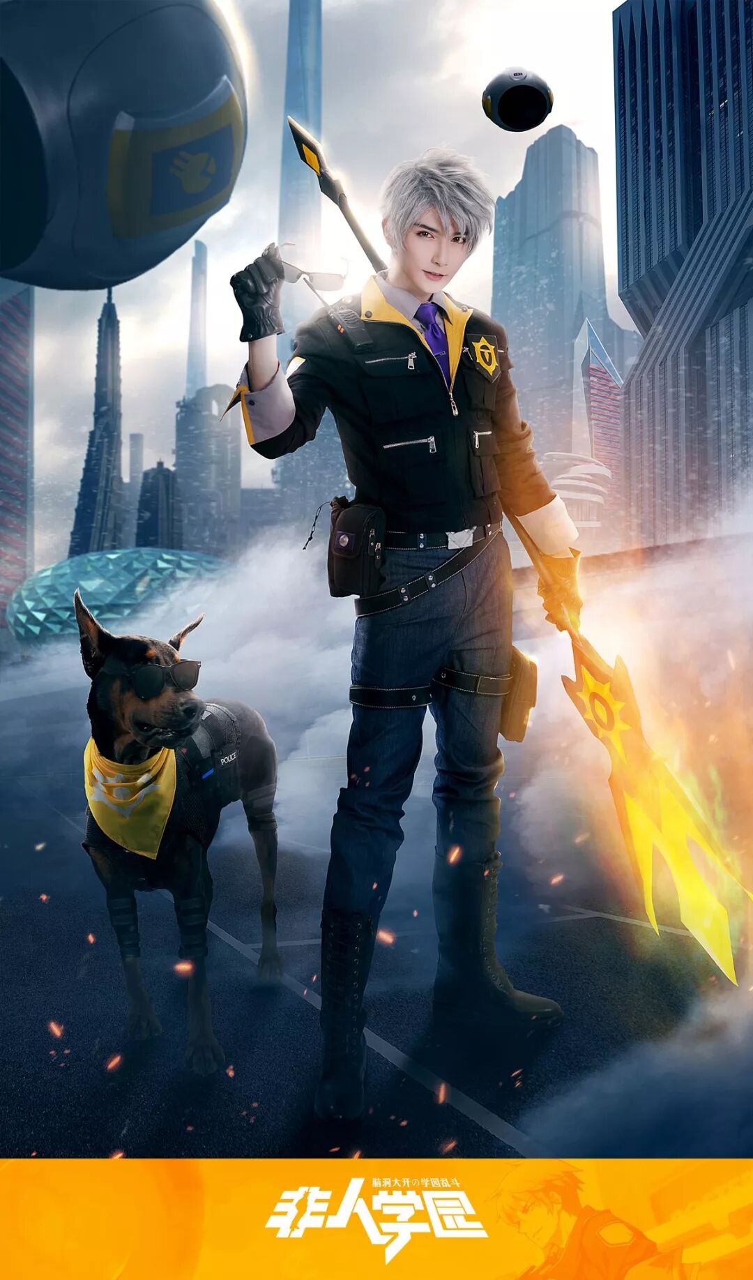 学园开学,大批新老同学涌入校园,为了庆祝这个愉♂快的季节,cos社社长大佬、黄靖翔学长一人扮演男神巡检官·杨戬,以及优雅的万能执事·太白的 正式大片 ,也在学园LED大屏幕上滚动播出啦!