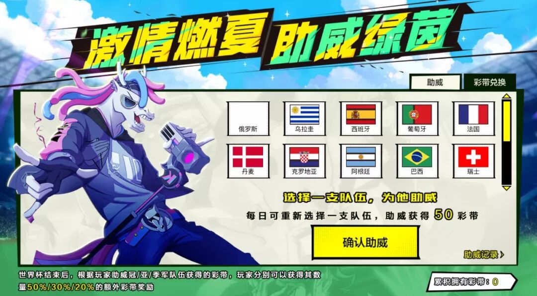 世界杯结束后,学园将会开放兑换入口。只要 参与过 助威活动,拥有助威彩带,就可以兑换 专属头像框、染色、神奇星星、合同文本、小钱钱(?) 等游戏内道具!(*/ω\*)计算一下每日获得的彩带数量,大家岂不是可以把这些一网打尽?