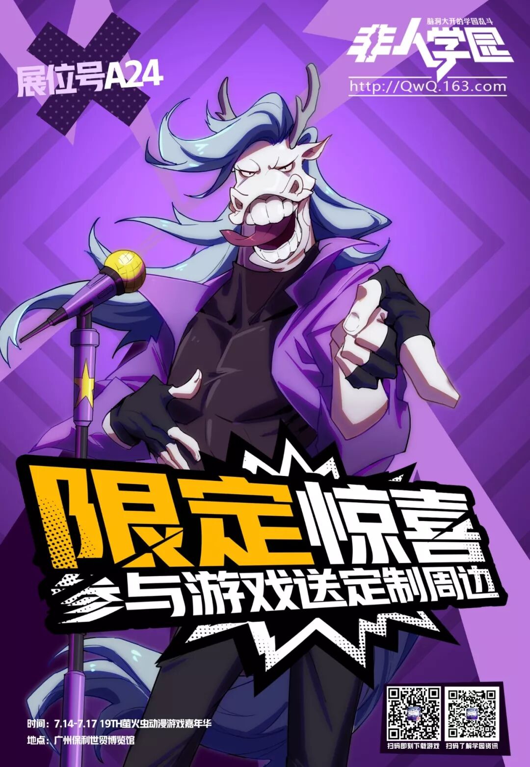 时间:7月14日至7月17日 地点:广州保利国际世贸中心 展位:5号馆A24展位《非人学园》 活动:微信微博签到、cos合影墙、现场水友赛等