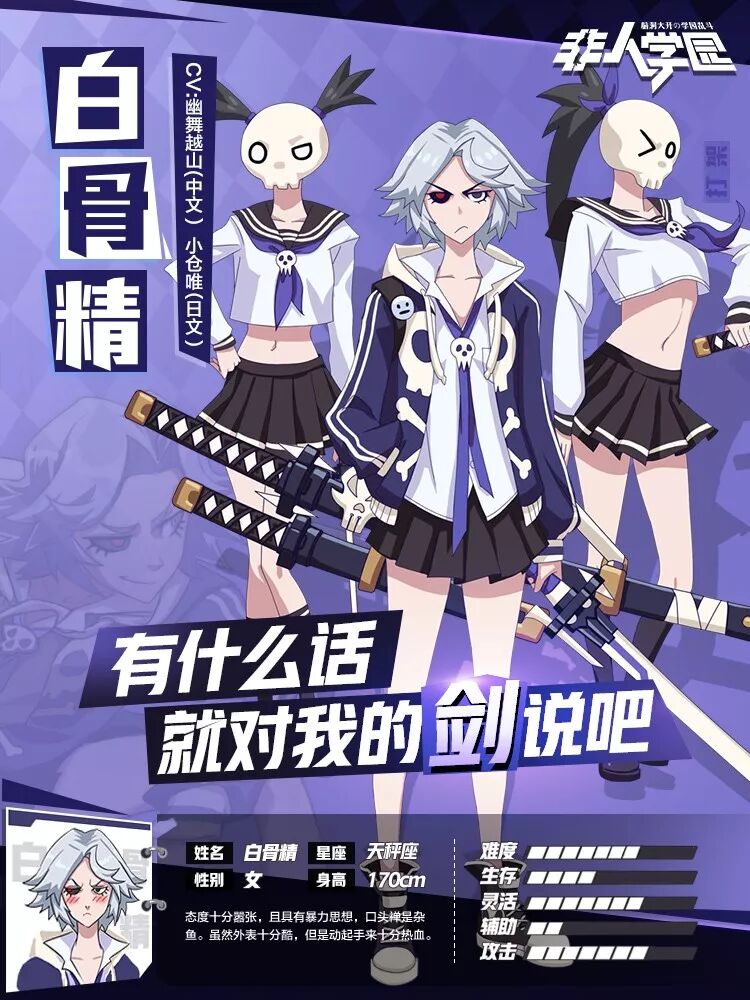 骨神: 随身携带的三把佩刀。白骨精用它多次训练,追求极致的刀法。 小妹: 骷髅军团的小妹,白骨精的得力助手,负责帮助白骨精日常打杂。