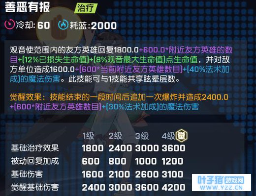 佛光普照:这个应该是观音的核心技能了,自身血量上限加成蛮高的.出血装单人加血量就蛮可观的.5个人的话肯丝血全满. 觉醒额外增加一次.至于伤害....呵呵...