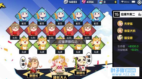 应援.全血量上线,因为观音法术加成也不高,魔法伤害技能也没不怎么样.法穿和法术值不太划算. 大招和E好歹有点血量上限加成. 蓝色也可以换成移动速度.去和大野前期双游. 团长就不用说了,治疗加成,额外给自己回血.国宝是因为观音这英雄本来也没啥伤害.另外一个副团可以看喜好.