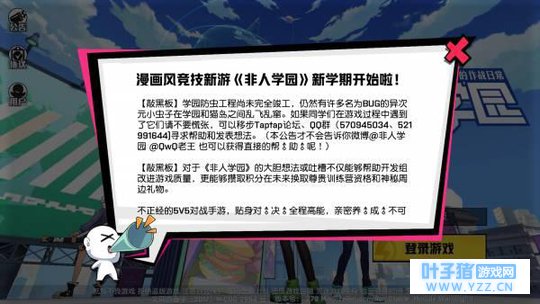 《非人学园》已经开测多时了,同学们已经沉浸其中无法自拔,满满的激情让我们仿佛再次感受到二次元那份沉甸甸的爱。脑洞大开的游戏遇见这个不正常的游戏策划团队,一切都是那么顺其自然。 当喵姐遇见这个期待已久的游戏时,赶忙注册账号,上线操作一把。当我打开游戏的那一瞬间,我有点小小被这个公告给震惊了。