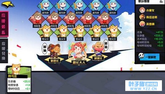 空口无凭,我们来试验一下 先从应援团开始,绿色带法术吸血,红色带法强,蓝色带生命值,因力是新玩法,前期肉一点保险,团长副团长都带法强。