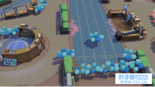 当然了,除了在英雄的人设上脑洞大开以外,《非人学园》的游戏地图也是让人新奇感满满。《非人学园》的地图加入了众多与“学园”相关的元素,樱花树、彩色气球、课桌、运动场、操场跑道……让人一看就有一种到了日式学园的感觉。