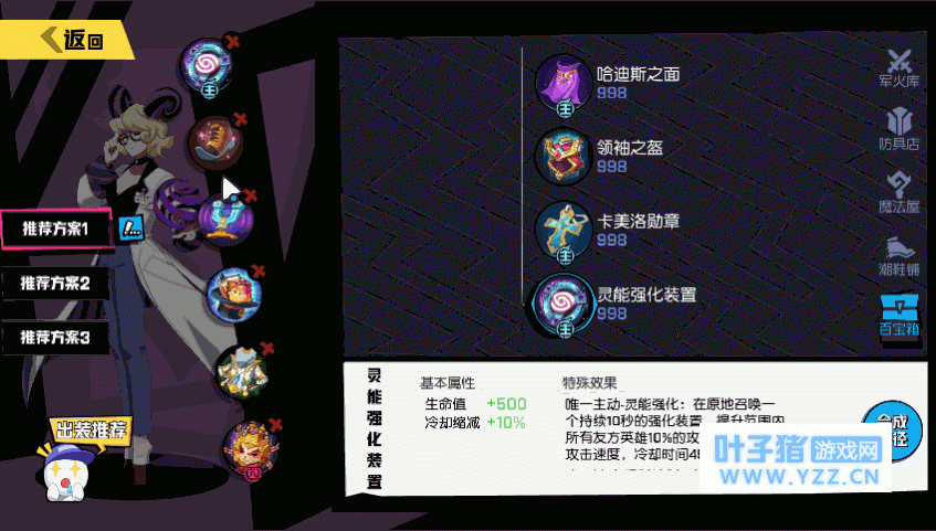 羊丽的出装推荐:灵能强化装置—牛津鞋—干扰器—次元魔法帽—国师长袍—大圣面具,前期的羊丽输出较低,所以要抓紧时间对线出装,在后期的团战中及早建立优势。