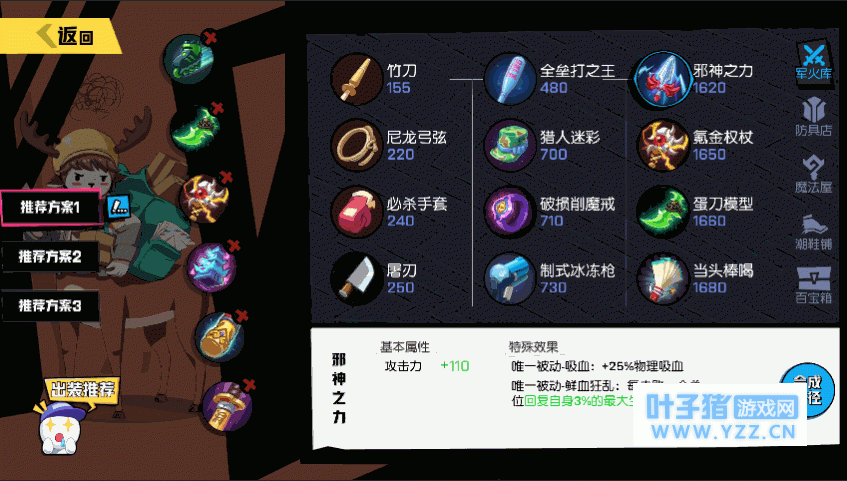 鹿哩的出装推荐:疾步滑轮—蛋刀模型—氪金权杖—琉璃塔—金轱辘棒—洞爷湖。鹿哩的出装与打野刺客的出装大同小异,增加输出与暴击的同时增加移速,能快速进入或脱离战场,在前期一手稳定的输出能最大程度的压制对手。