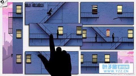 玩家可以移动“漫画格子”来帮助角色逃脱 除了玩法新颖,游戏对氛围的营造也属上乘。角色形象都是剪影,爵士乐神秘又优雅。通过拖动使人物在格子间穿梭,剧情随之展开,整个过程干净利落。这种掌控游戏角色命运的玩法,也让玩家有了一种使命感。 本作的故事发生在中国,在场景中随处可见灯笼、集市这样的中国元素,音乐在前作爵士乐的基础上添加了中国曲风,玩起来格外亲切。 除了风格,本作还有其他变化:关卡难度增加了不少。相对地,剧情更多地用动画表现。这样一来,虽然少了剧情与关卡结合带来的新奇感,却大大提高了游戏性。
