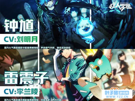琰罗、铁扇CV海报 在学园中作为颜值担当的“钟雷”CP则由刘明月、李兰陵演绎,二位在动画《灵契》中分别献声的杨敬华、端木熙也是一对人气爆表的好基友,此次“性格互换”,不知这样的组合又会碰撞出什么火花?