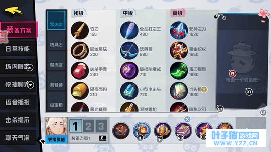 在备战中可以对英雄的“装备方案”进行调整,以便在游戏里可以快速买到自己想要的装备,不用再点开商店慢慢翻慢慢找。