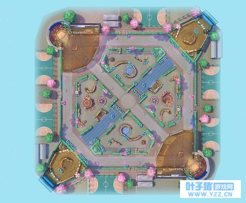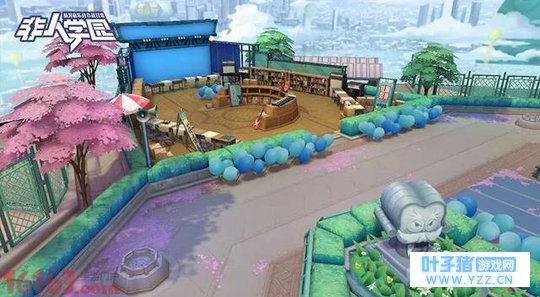 为了体现迥异的游戏世界观,《非人学园》的地图进行了丰富的定制。 比如在主打的「学园」地图里,则整个地图元素都是熟悉的校园文化节场景。