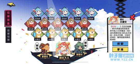 文章开头小编也说了这个游戏有点明星养成的味道,我们会在游戏里发现"应援"这个玩法~招募应援团这种事情我们平时只在综艺上看到过,但它如今生动的展现在了《非人学园》中,我们可以在游戏中为校园明星招募应援团从而帮助提升英雄的实力,说到这里想必大家也能猜出来应援团就是传统游戏中的辅助英雄的铭文,但在《非人学园》中却以应援团这种极富脑洞的方式呈现,使得游戏的氛围更加轻快愉快,应援物的形象也是很软萌,看着就很元气十足~同时,应援团的团长、副团长只要玩家升级就能逐步获得了,团员需要用拍手器兑换,但只要认真完成日常活动,拍手器积攒的速度还是很快的,免去了攒到猴年马月的烦恼。